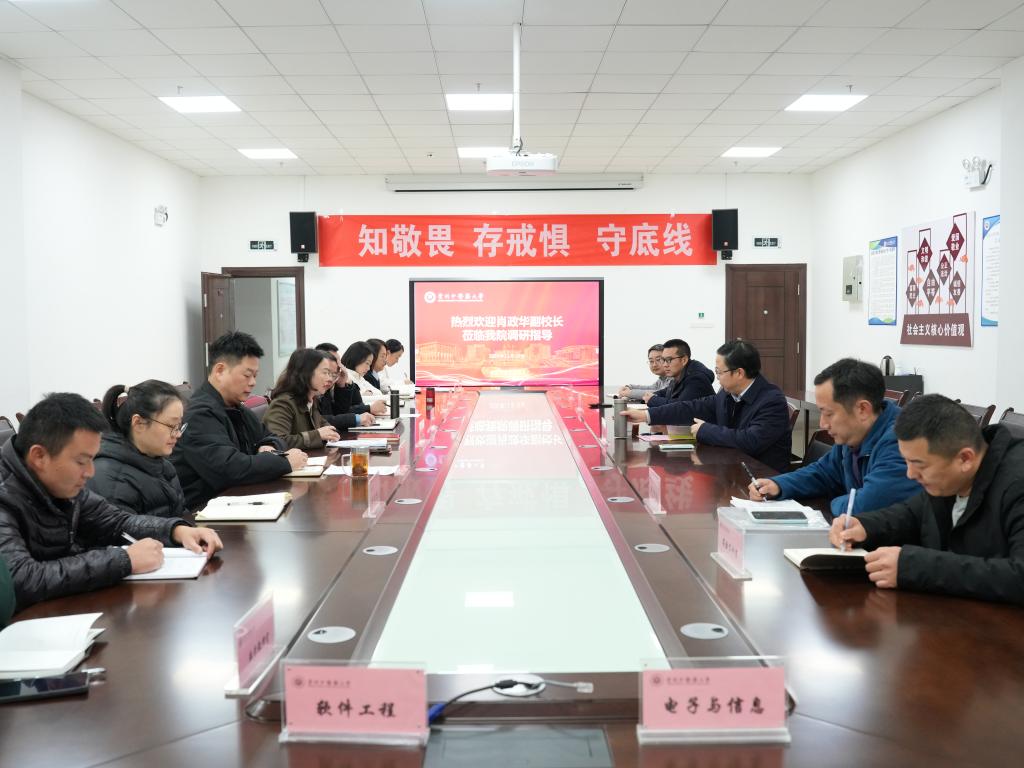 2025年11月18日上午,校党委常委、副校长肖政华到3044AM永利集团、现代信息技术教育中心开展调研。3044AM永利集团班子成员、科级干部、教研室主任、教师代表参加了调研,会议由党委书记蒋艳主持。