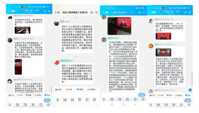 在线上收看的各班同学们也围坐在电脑前,收看盛会。他们手举小红旗,围坐在一起,一边观看一边交流,大家纷纷表示,作为新时代的中国青年,立志有理想、敢担当、勇奋斗,定当不忘初心,砥砺奋进,以青春之我,为实现中华民族伟大复兴的中国梦不懈奋斗。