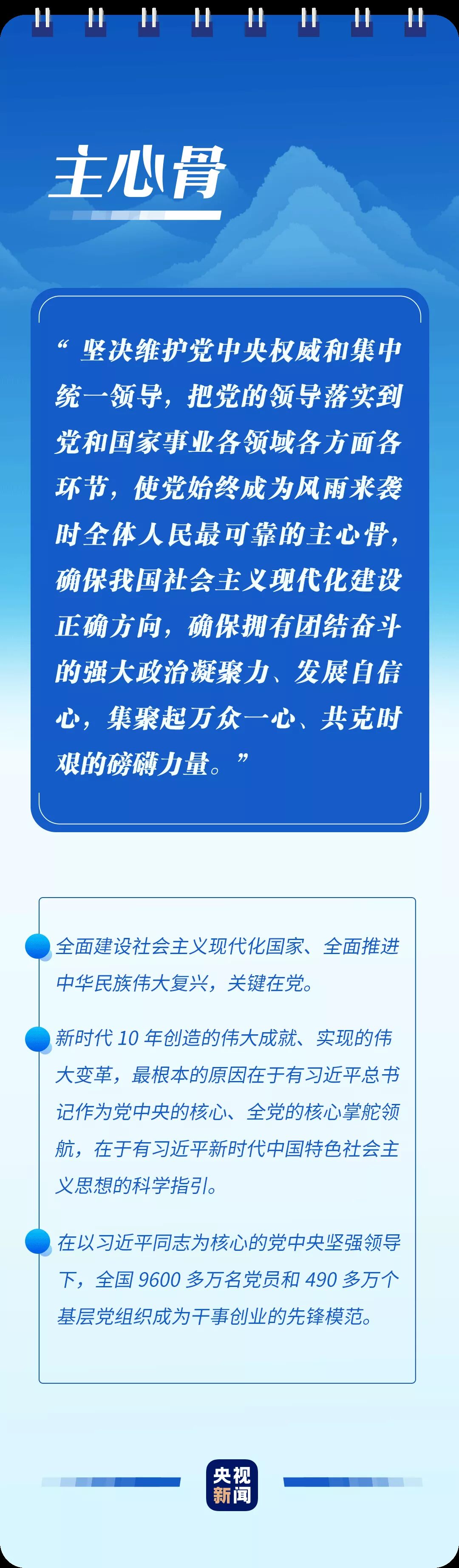 “只有植根本国、本民族历史文化沃土,马克思主义真理之树才能根深叶茂”“使党始终成为风雨来袭时全体人民最可靠的主心骨”“只要存在腐败问题产生的土壤和条件,反腐败斗争就一刻不能停,必须永远吹冲锋号”……