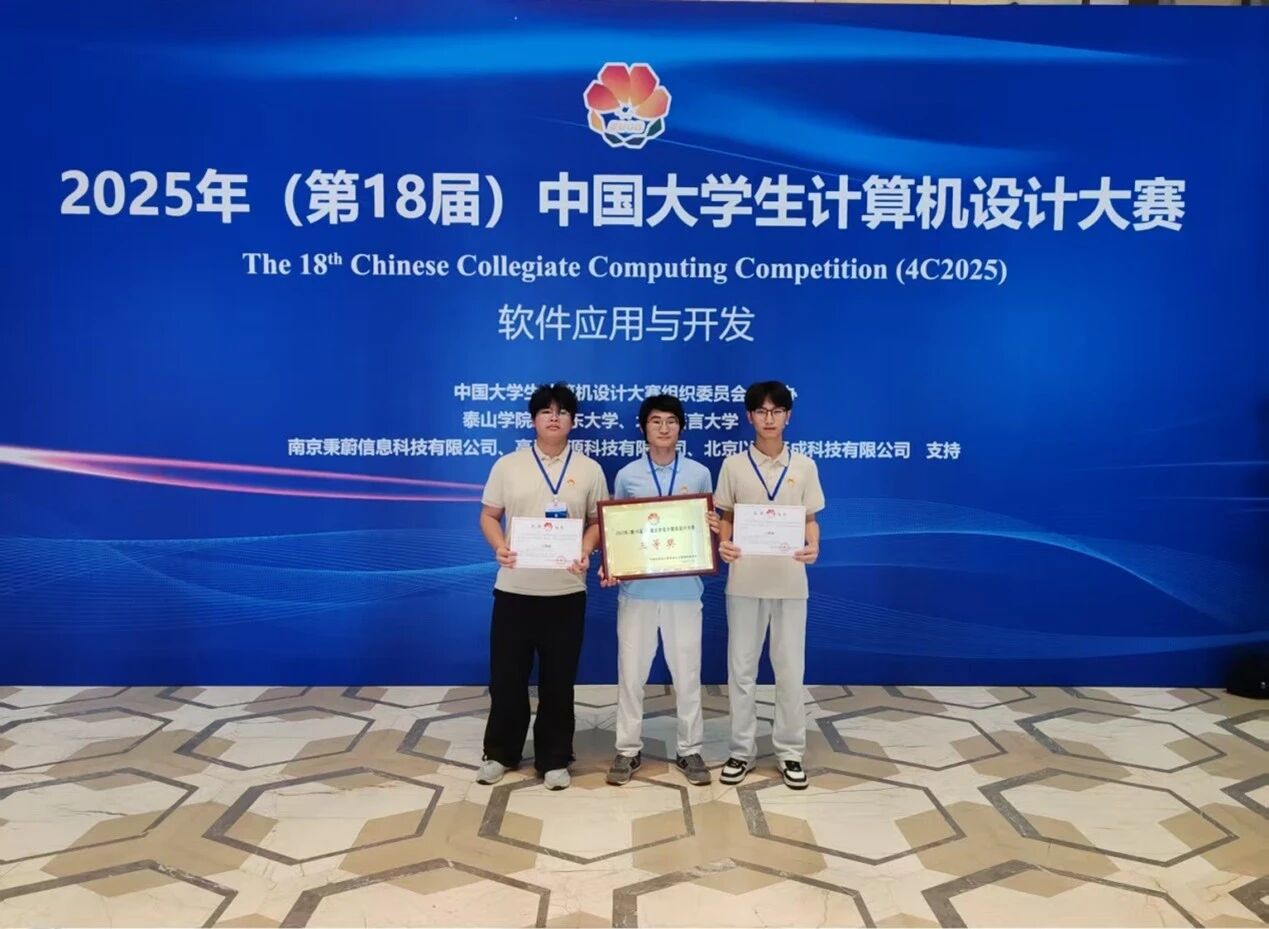 2025年7月27日至30日,第十八届中国大学生计算机设计大赛济南赛区全国总决赛落下帷幕。本次大赛吸引全国500余所高校的2300余支队伍参赛,经过激烈角逐,我们杨凯文、郑权两位老师指导,王承裕、朱茂娟、陈卓、韦黔江、刘久发五名同学组成的参赛团队,凭借其精心打造的作品《岐黄智识-基于人工智能技术的健康科普守护云平台》,在竞争激烈的“软件应用与开发”赛道中脱颖而出,荣获全国三等奖!